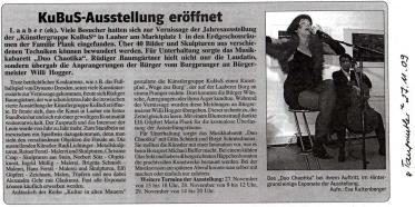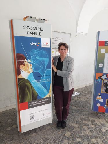 A - Brückenfest in Kallmünz. Ich durfte in der ehrwürdigen "Galerie am Fels" meiner Vermieterfamilie Scholz ausstellen. Die Galerie ist mitten in der Vilsgasse und es waren an den beiden Tagen hunderte von BesucherInnen da. Das Wetter war fantastisch und es war ein großartiges Fest. |