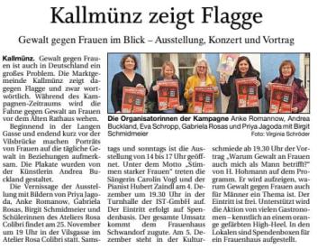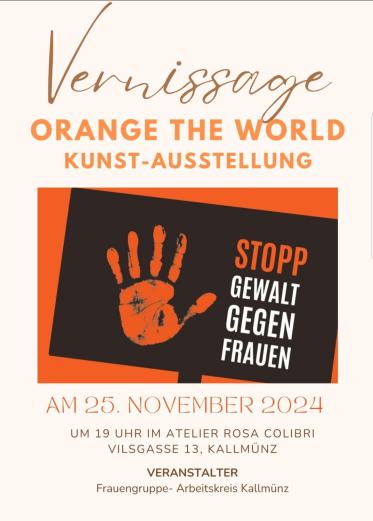Ausstellung. "Orange the world!" Weltweiter Aktionszeitraum gegen Gewalt an Frauen. Kallmünz ist mit dabei! Und ich bin bei der Ausstellung mit zwei Werken aus meiner Reihe Feministischer Konkretismus mit dabei. Alle Infos zum Aktionszeitraum... |