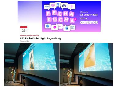Ich bin bei der 33. Pechakucha-Nacht in Regensburg dabei. Der Titel meines Vortrags lautet: "Von der Delphinliebe zu den Ozeangefährten". 20 Bilder in je 20 Sekunden. Das wird ein Spaß! Eintritt 5 €. Mehr Infos... |