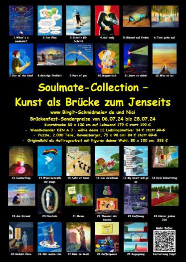 Neues Angebot, insbesondere für die Bilder der Soulmate-Collection, aber auch aller anderen Werke, die auf meiner Webseite zu finden sind: Sonderdruck in DIN A 4 mit geschnittenem Rahmen aus edlem Leinenpapier für nur 9,99 €. Mehr dazu hier im Shop... |