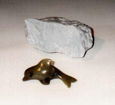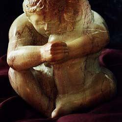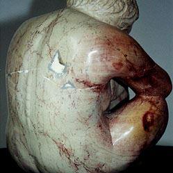 Bereits am zweiten Tag der Arbeit an diesem Stein brach das obere Drittel einfach weg. Nachdem der erste Schock überwunden war, klebte ich es wieder auf und arbeitete weiter. Nichts hätte das frühe Trauma treffender darstellen können, als es der Stein selbst durch diesen Bruch tat.