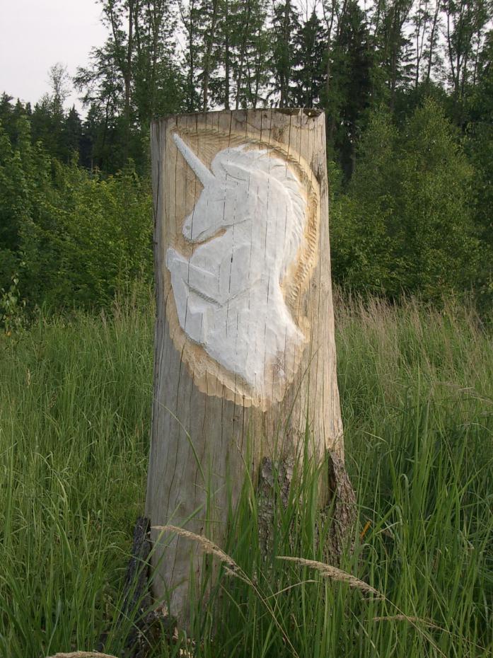 Vor einigen Jahren hat das Einhorn viele magische FreundInnen in diesem Wald gefunden, die allerdings nur für Geocacher sichtbar sind.
