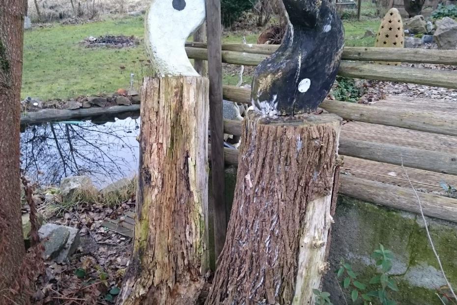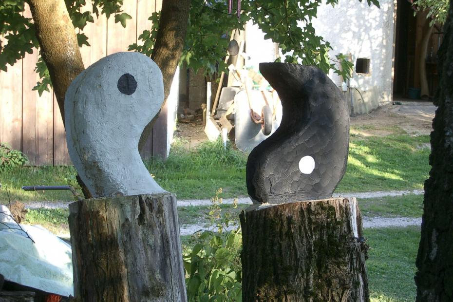Eine Freundin wollte die beiden Weiden-Baumstümpfe in ihrem Garten in Sulzbach bei Donaustauf gestaltet haben. Diese inspirierten mich zu Yin und Yang.