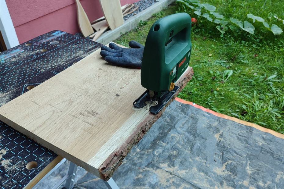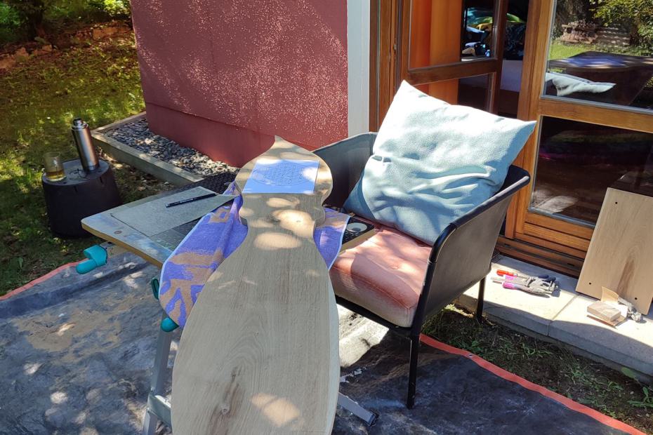 Basis war ein Eichenbrett mit zwei Meter Länge, ca 30 cm Breite und 2 cm Dicke.