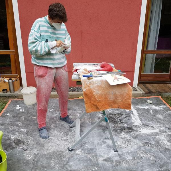 Eine Nachbildung aus Ton wurde mit Acryl marmoriert und lackiert und ist in Kallmünz neben der Galerie am Fels in der Vilsgasse 28 zu sehen.