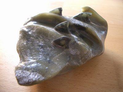 Bereits am zweiten Tag der Arbeit an diesem Stein brach das obere Drittel einfach weg. Nachdem der erste Schock überwunden war, klebte ich es wieder auf und arbeitete weiter. Nichts hätte das frühe Trauma treffender darstellen können, als es der Stein selbst durch diesen Bruch tat.