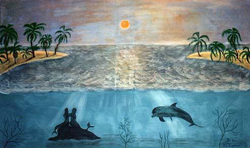 Die Ausschnitte mit Meerfrauen und Delphin sind als Postkarte erhältlich.