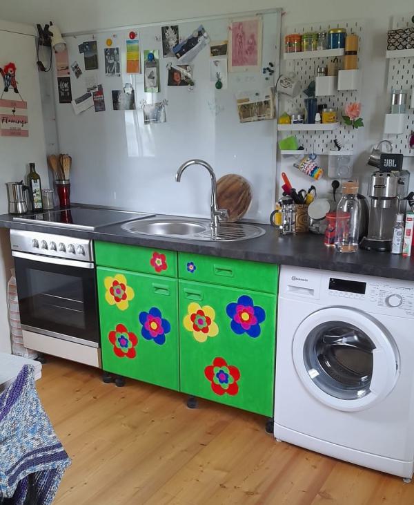Dispersionsfarben auf Bettlaken auf Dachlattenkonstruktion