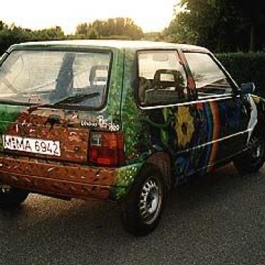 Ja, Jeanny, die Giraffe, taucht auf dieser Webseite noch an zwei anderen Stellen auf (Wandbild und Comic). Nachdem sie mittlerweile "trocken" ist, braust sie gerne mit Josy, dem schnittigen Triumph-Cabrio-ClassicCar aus dem besonders tollen Jahrgang 1973, durch die Gegend. Das Bildnis ziert nun Josys Garage und ist Blickfang in einem Münchner Hinterhof.