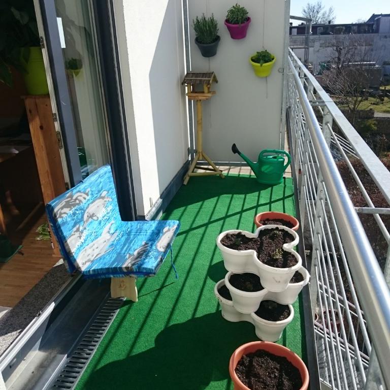 Dann war ich gleich so motiviert, dass ich in einer Urlaubswoche im März meinen trostlosen Balkon in ein kleines buntes Schlaraffenland umgestaltete.