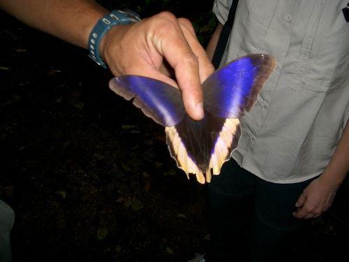 und gleichzeitig fliegt ein ca. 20 cm großer strahlend blauer Schmetterling (männlicher Morphofalter) durchs Bild. Und man hat sich dabei nicht bewegt!