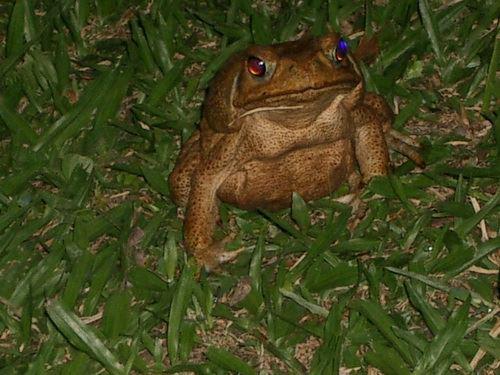 Gegen Ende unserer Nachtwanderung im Childrens Rainforest - nachdem wir im Mondschein in einem Vulkansee gebadet hatten - trafen wir bei unserer Behausung noch auf diese große Aga-Kröte. Hätte ich gewusst, dass die ihr Gift aus Drüsen bis zu 30 cm weit verspritzen kann, wäre ich zum fotografieren nicht so nah hin gegangen.