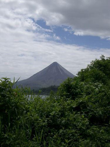 Der Kegelvulkan Arenal mit einem Stück des Arenalsees im Vordergrund. Genau so, wie man sich einen Vulkan vorstellt. Allerdings wusste man bis 1968 gar nicht, dass er ein Vulkan ist.