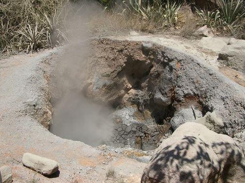 Beispielsweise solche Erdlöcher aus denen es heiß dampfend stinkt und aus denen es tobt, als ob sich eine Waschmaschine gerade im Schleudergang befindet.